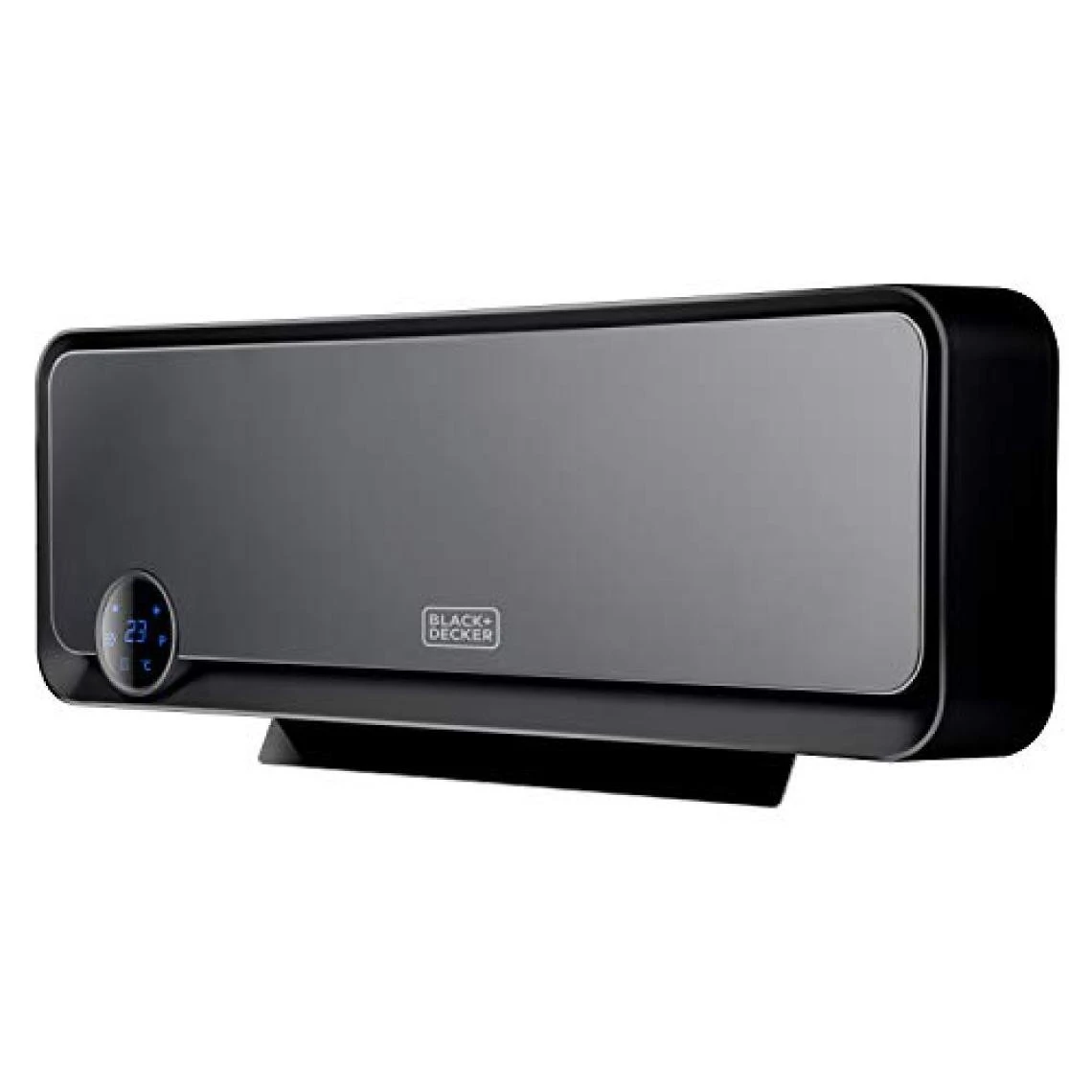 Profitez de l’atmosphère idéale avec le radiateur mural en céramique BLACK+DECKER. Son système de chauffage en céramique PTC chauffe instantanément. De plus, grâce à son thermostat réglable, la température restera stable entre 10 et 49 °C aussi longtemps que vous en aurez besoin.Fonctionnalité:COMPLÈTEMENT PROGRAMMABLE : Avec un dispositif de programmation quotidienne et hebdomadaire, ainsi qu’un thermostat de 10 A 49ºc, vous pourrez régler le chauffage d’une manière précise selon vos besoins, aussi bien pour la température que pour le temps de fonctionnement.POUR TOUTES LES PIÈCES : Avec son support mural, placez-le où vous en aurez le plus besoin. Grâce à sa résistance à l’humidité IPX2, vous pourrez aussi profiter de toutes ses avantages dans votre salle de bain.MINUTEUR : Programmez le temps de fonctionnement jusqu’à 12H et profitez de son arrêt automatique. L’appareil s’éteint tout seul à la fin de la minuterie pour ne pas dépenser plus d’énergie.SYSTÈME DE SÉCURITÉ : Système de sécurité d’arrêt automatique en cas de surchauffe, ainsi que d’auto-arrêt quand il détecte une baisse de température, par exemple, quand une fenêtre s’ouvre soudainement.SYSTÈME DE CHAUFFAGE PTC : Son système de chauffage PTC (positive température coefficient), composé de petites plaques en céramique qui chauffent de manière ultra rapide et gardent très efficacement la température. Cela permet d’obtenir immédiatement de la chaleur, sans attendre.Spécifications:Marque: BLACK+DECKERCouleur: NoirSortie de chaleur: 2000 WattsMéthode de chauffage: RayonnantSource d’alimentation: Alimenté par pileNuméro du modèle de l’article: ES9350010BTempérature: 10 to 49 CHauteur: 18.5 cmLongueur du câble: 1.5 m