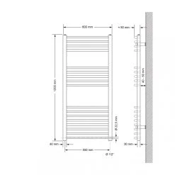 ECD Germany Radiateur Pour Salle De Bain – 500 X 1200 Mm – Blanc – Dro…