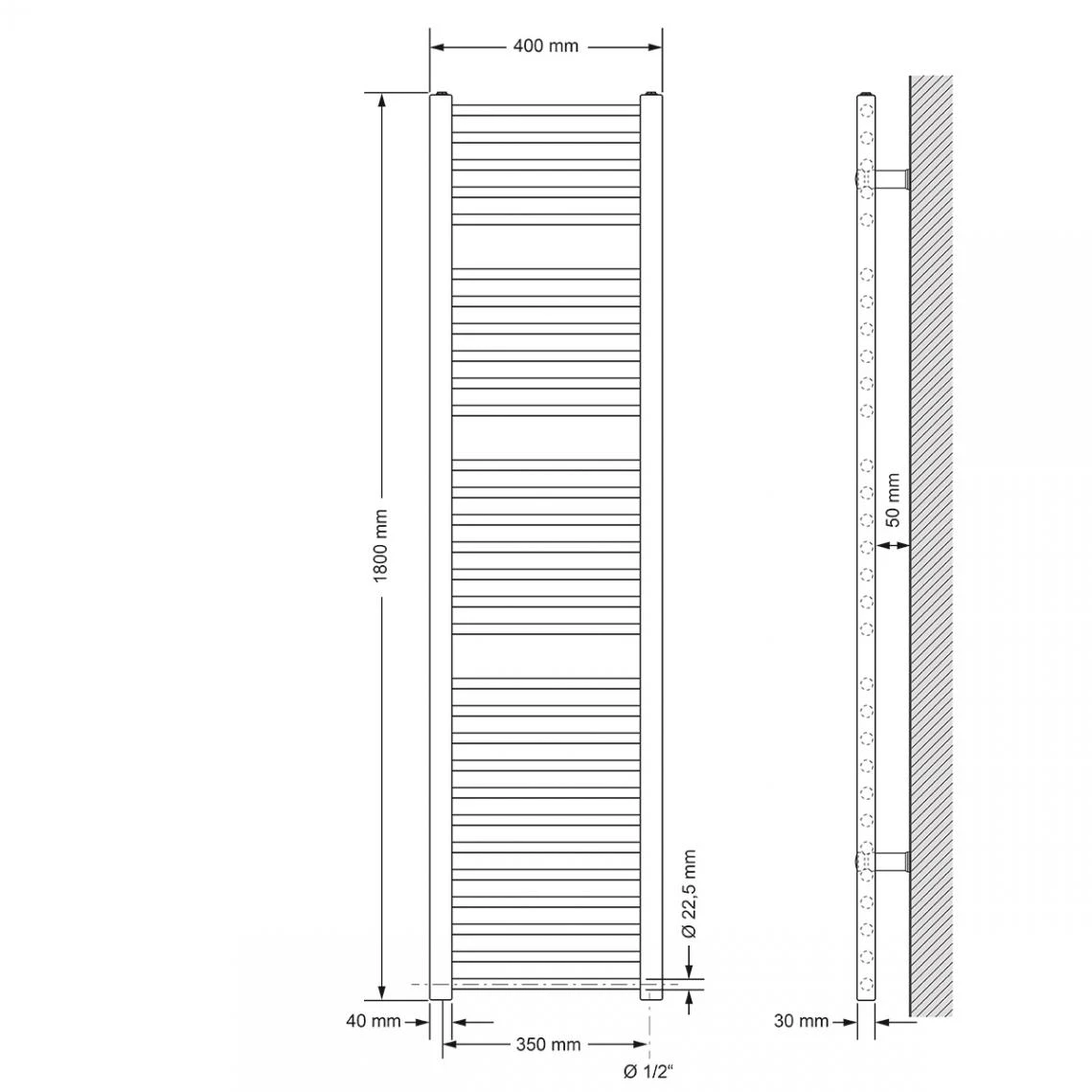 Points forts Ecd Germany ECD Germany Radiateur Porte Serviettes mural Radiateur Sèche-serviettes droit 400 x 1800 mm chrome avec connexion latérale