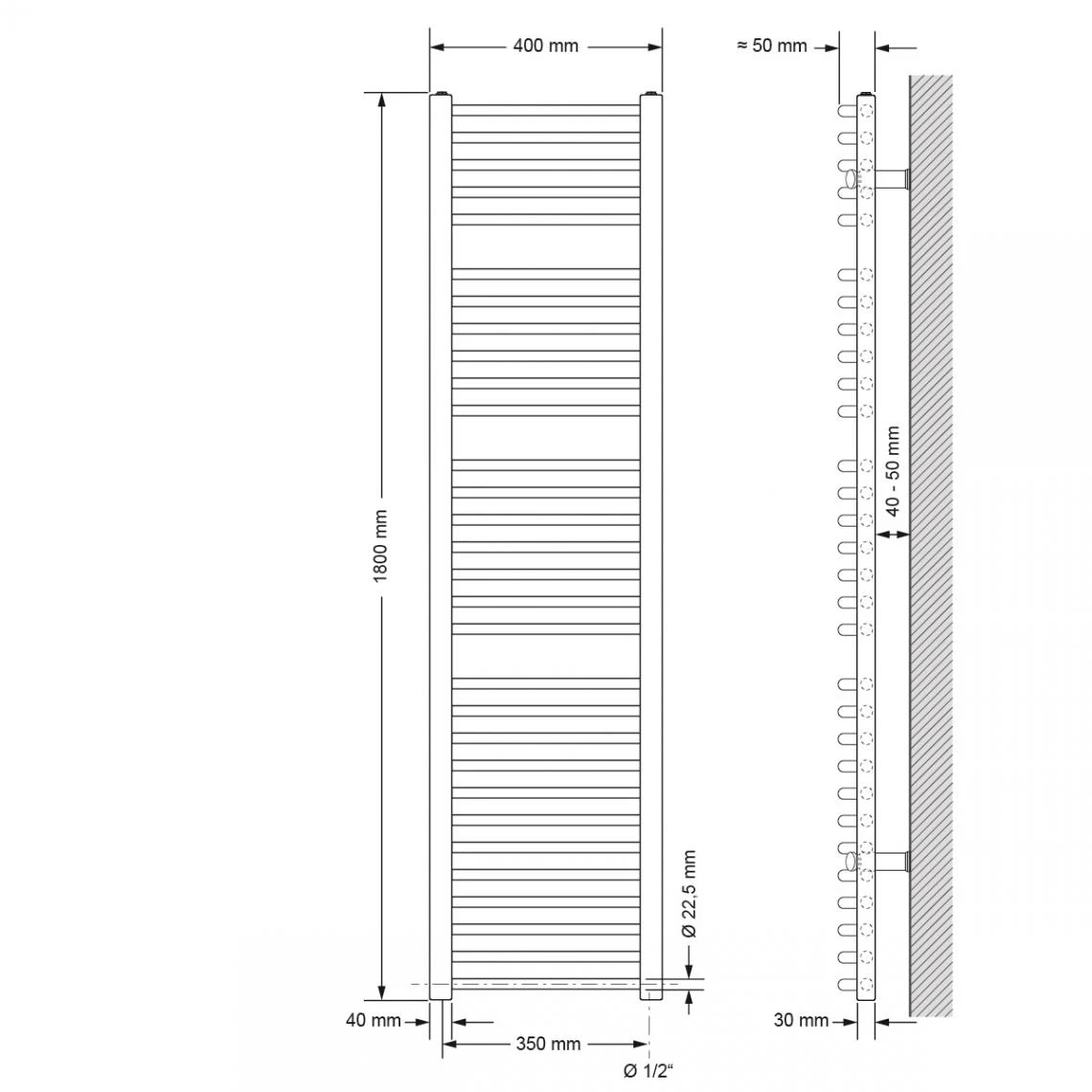 Points forts Ecd Germany ECD Germany Sahara radiateur sèche-serviettes – 400 x 1800 mm – Blanc – droit avec raccordement latéral