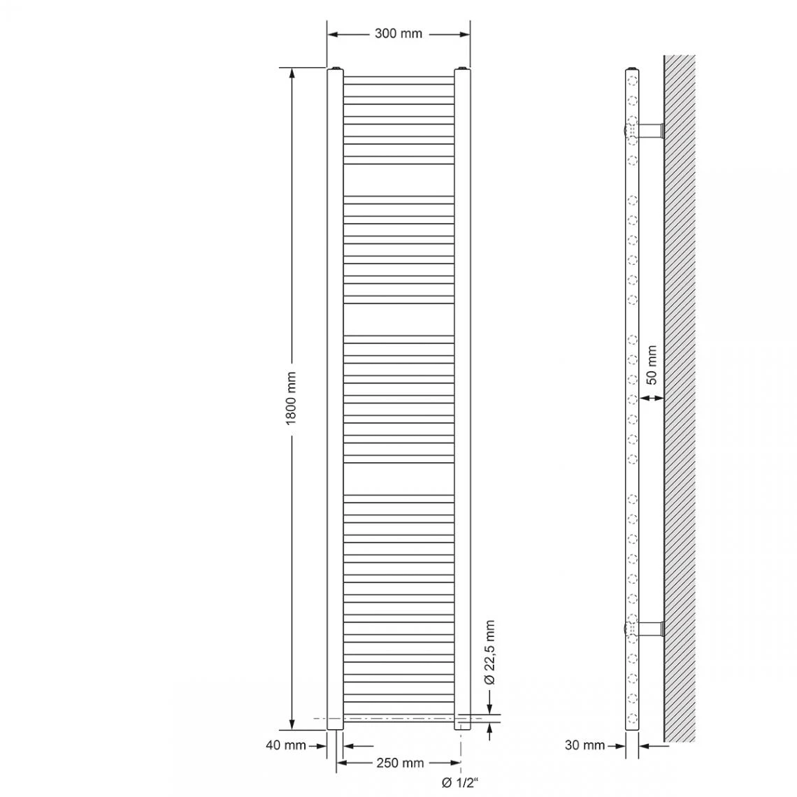 Points forts Ecd Germany ECD Germany Sèche-Serviettes Design Sahara – 300 x 1800 mm – Anthracite – Connexion Latéral – Forme Droit – avec Kit Montage Mural – Radiateur Sèche Serviette pour Salle de Bain