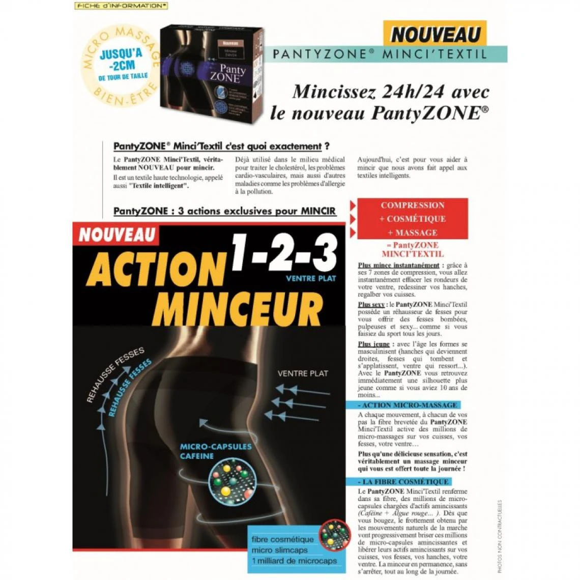A chaque mouvement, à chacun de vos pas la fibre brevetée du CollantZONE Minci’Textil active des millions de micro-massages sur vos cuisses, vos fesses, votre ventre ‘ Plus qu’une délicieuse sensation, c’est véritablement un massage minceur qui vous est offert toute la journée !
