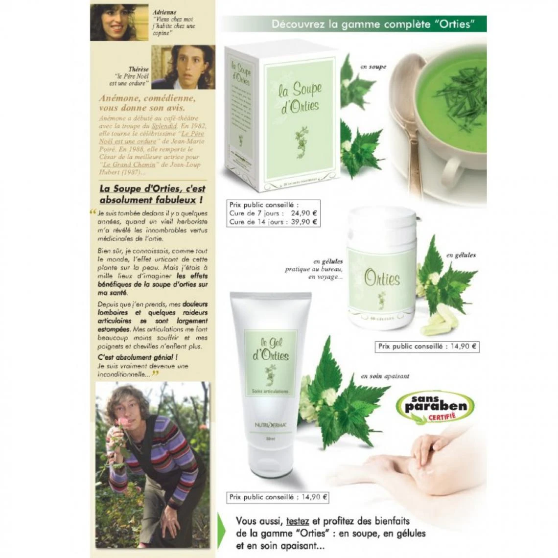 Connue des Gaulois et des Romains, plante précieuse depuis l’Antiquité, l’ortie a toujours fait partie de nos pharmacopées. Plante commune de nos campagnes et de nos jardins, redoutée pour ses piqûres, l’ortie est reconnue pour ses immenses bienfaits. Le Grec Dioscoride (médecin et botaniste Grec du 1er siècle avant J.C.) l’utilisait comme purgatif et purifiant. Paracelse, le célèbre médecin de la Renaissance réservait à l’ortie une place de choix dans ses préparations. Après plus d’un siècle de mépris, elle est aujourd’hui réhabilitée et on reconnaît ses qualités de fortifiant, de régulateur du sang et de stimulateur des fonctions digestives. L’ortie était couramment utilisée en usage externe, ou interne pour ses vertus fortifiantes, calmantes, aphrodisiaques, astringentes et antihistaminiques. Et dans le monde entier, du Brésil à l’Allemagne, de l’Inde aux Etats-Unis, en passant par le Pérou, l’ortie est à l’honneur. Reminéralisante D’une richesse minérale incomparable (fer, silice, magnésium, calcium, entre autres) l’ortie favorise le bien-être articulaire et osseux, elle permet aussi de récupérer une bonne mobilité. L’ortie offre une action bénéfique sur tous les tissus contenant du collagène, y compris les os. L’ortie agit sur les cartilages usés des personnes présentant une gêne articulaire. Grâce à son action plus que bénéfique sur la souplesse des tendons, des articulations et de la peau, de nombreux professionnels la recommandent pour apaiser les tendinites, les contractures.