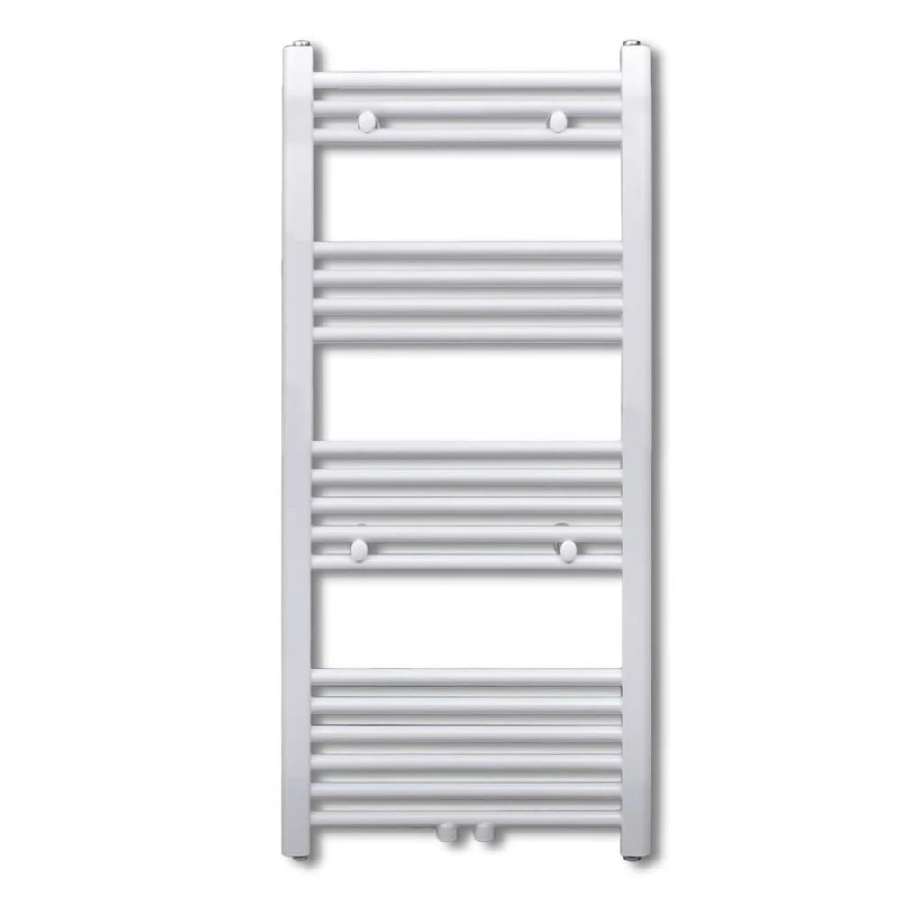 Icaverne – Radiateurs reference Radiateur Sèche-Serviettes Vertical pour Salle de Bain 600x1160mm Couleur : blanc Matériau : acier Style : Droit Sortie : 560 W (422 BTU) Dimensions : 600 x 1160 mm (l x H) Distance entre les centres de tuyaux : 550 mm Distance entre le mur et l’avant du radiateur: 50 mm Nombre de barres transversales : 18 avec un diamètre de 22 mm, divisé en 4 sections de 3, 4, 5, 6 Montage mural Pack de fixation : Inclus