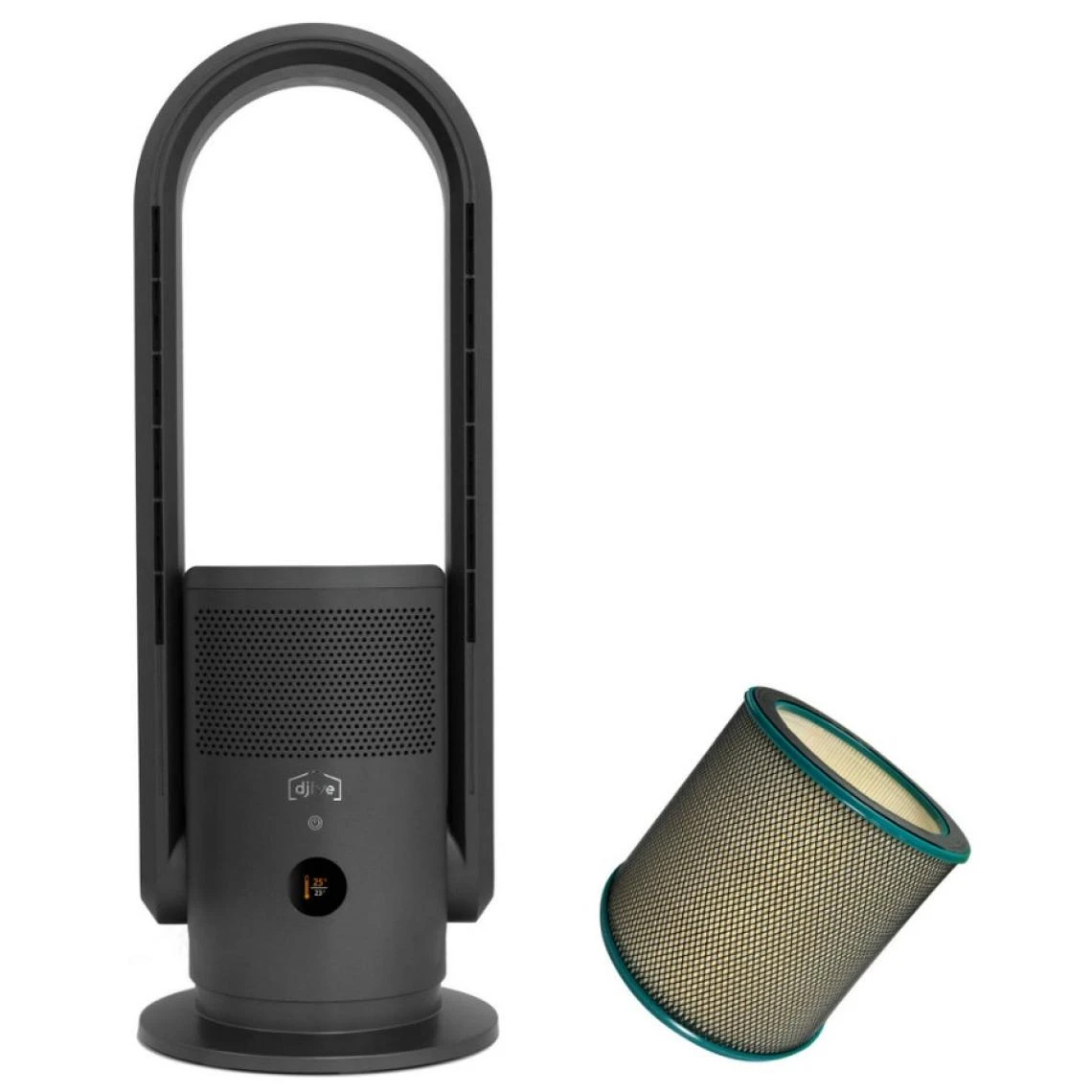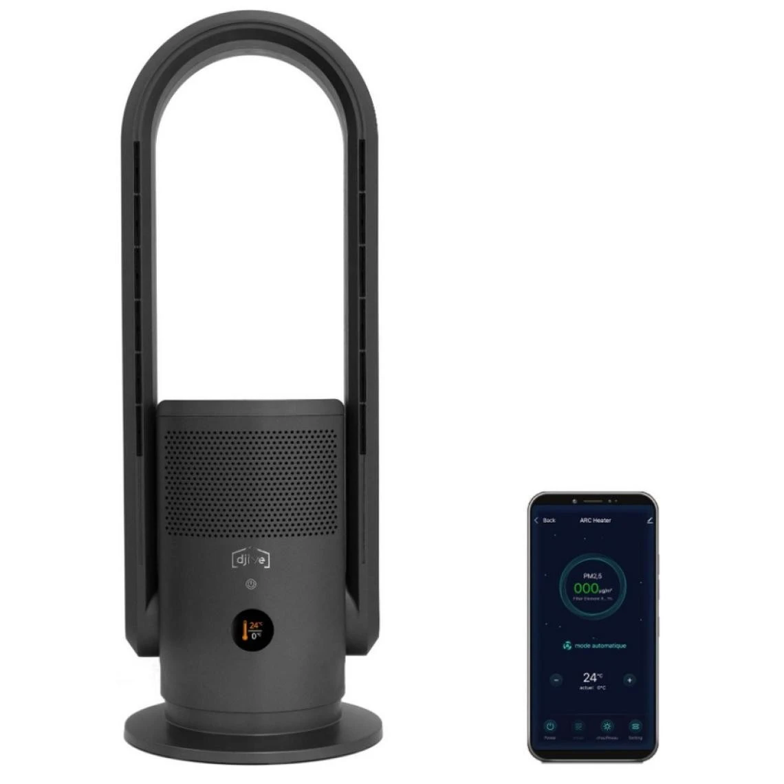 purificateur d’air 25m² – DJ50017 – Le Flowmate ARC Heater DJ50017 de Djive est une combinaison 3 en 1 d’un purificateur d’air, d’un ventilateur sans rotor et d’un radiateur soufflant – Nettoie, rafraîchit et réchauffe automatiquement une pièce de 25 m² en une heure si nécessaire, CADR : 86,3 m³/h. Les FILTRES HEPA 13 et la désinfection par UV éliminent efficacement 99,995 % de toutes les particules (pollen, virus, bactéries, poussières fines, etc.) de l’air – idéal pour les personnes souffrant d’allergies. SMARTPHONE APP et fonctionnement intelligent : avec l’application djive home, le chauffage ARC peut être contrôlé de manière flexible en déplacement via l’application, Amazon Alexa et Google Home. VENTILATION PUISSANTE avec 9 vitesses de ventilation et un mode turbo. Le MODE SILENCE garantit une nuit silencieuse (29 dB) avec de l’air pur et frais grâce à la fonction sommeil et à l’arrêt automatique grâce à la fonction minuterie. – Type : Traitement air.