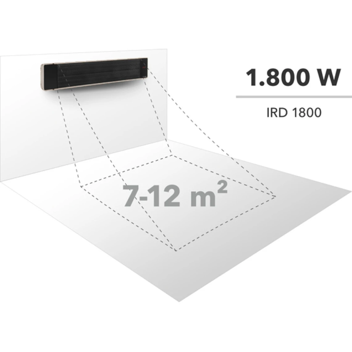 Grâce au rayonnement infrarouge moyen et lointain, l’IRD 1800 génère une chaleur homogène et ciblée sans chauffer l’air ambiant. Cet appareil convient donc particulièrement bien au chauffage d’espaces en extérieur à l’abri du vent (terrasses, balcons).