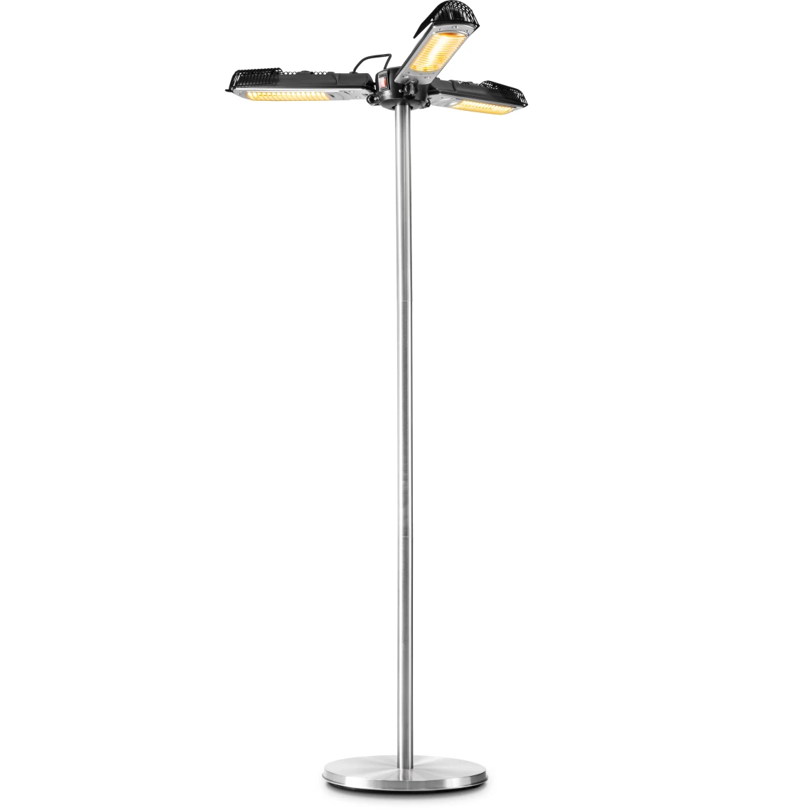 Chauffage radiant infrarouge sur pied à 3 ailes avec trois niveaux de chauffage (max. 2.000 W) pour des heures chaudes et agréables à l’extérieur