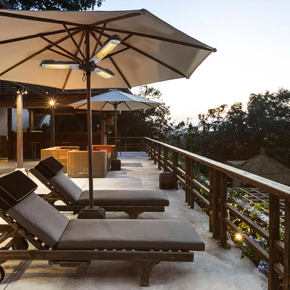 Vous souhaitez utiliser l’IRS 2005 en combinaison avec un parasol ? Rien de plus simple. En effet, la construction de ce radiateur stylé à trois ailes permet non seulement de le fixer facilement à la barre en acier inoxydable fournie, mais aussi à n’importe quel parasol ou parapluie de restaurant (adapté aux Ø 2,5 cm – 6 cm).