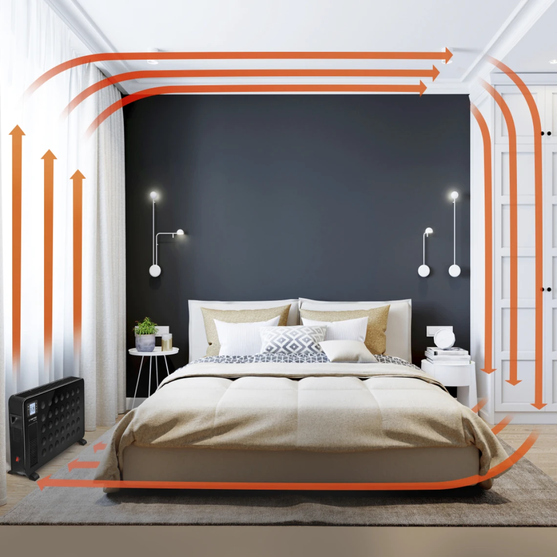 Lorsqu’il fait froid, on souhaite naturellement pouvoir chauffer au plus vite. Pour rĂ©pondre Ă ce besoin, ces deux nouveaux convecteurs sont Ă©quipĂ©s d’un ventilateur supplĂ©mentaire permettant d’accĂ©lĂ©rer le brassage de l’air et la diffusion de la chaleur. L’air rĂ©chauffĂ© monte en traversant la sortie d’air et crĂ©e un mouvement d’aspiration naturel qui entraĂ®ne l’air plus froid en direction de l’appareil. La chaleur se rĂ©partit ainsi dans l’ensemble de la pièce – une chaleur propre, gĂ©nĂ©rĂ©e sans condensation ni odeurs grâce Ă l’emploi d’un Ă©lĂ©ment chauffant Ă©lectrique.