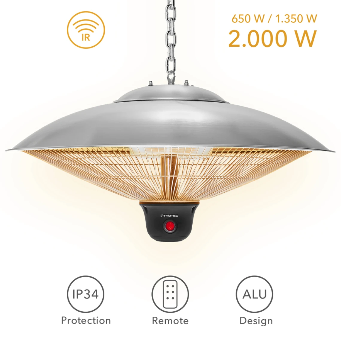 Points forts Trotec TROTEC Radiant suspendu design IR 2000 SC chauffage d’extérieur de terrasse chauffage électrique chauffage de plafond chauffage d’appoint